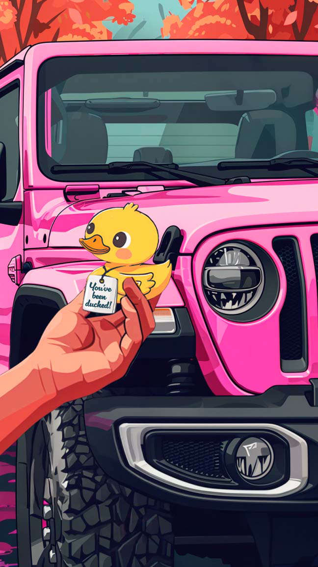 Історія руху DuckDuckJeep почалась відносно нещодавно, лише в 2020 році, і початок цьому поклала одна людина та один пост в соціальних мережах. Свого часу Елісон Парламент придбала кілька жовтих качечок, щоб розкласти їх вдома для створення позитивної атмосфери. Виходячи з торгового центру, Елісон помітила автомобіль Jeep Wrangler й оскільки вона була власницею аналогічного автомобіля, то вирішила поділитись позитивом та качечкою. Так з’явилась перша фотографія автомобіля Jeep з качечкою — і вже до вечора пост в соціальних мережах з підписом «Класний Jeep!» зібрав 2 000 вподобань. Поступово такі віртуальні «привіти» набрали популярності, а хештег #DuckDuckJeep став загальновживаним в спільноті Jeep-ерів по всьому світу.