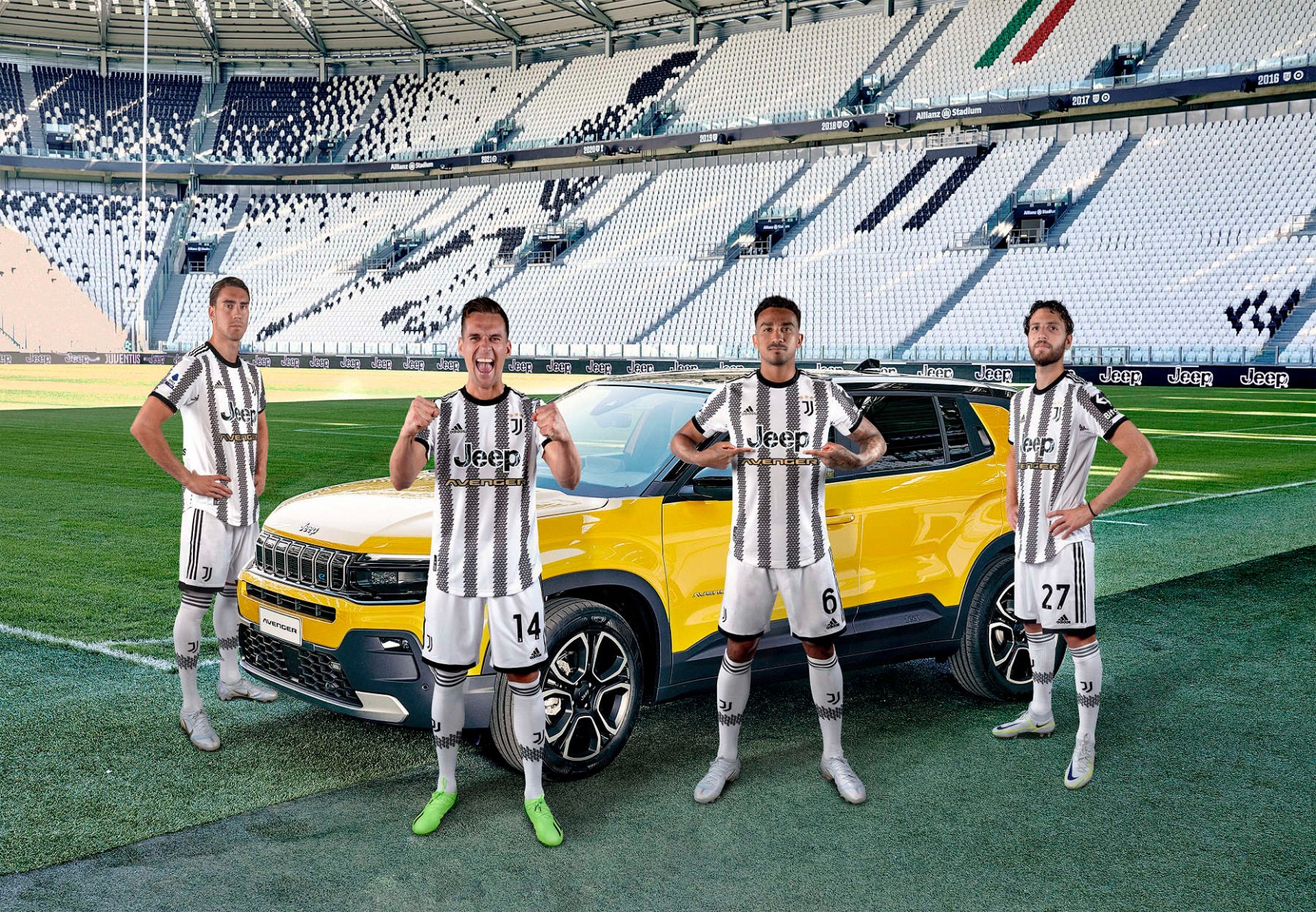 Нова сторінка партнерства між Jeep та «Ювентусом» була відзначена написом «Jeep Avenger» на спеціальних святкових футболках до дебюту першого в історії повністю електричного позашляховика Бренду Jeep. Команда «Бьянконері» одягла лімітовану версію футболки «Ювентуса» під час домашнього матчу проти «Інтера» минулої неділі (6 листопада).